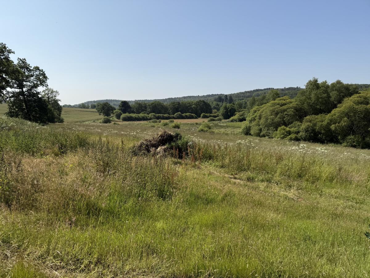 Sur environ 7 hectares de terrain (prairies et bois) d'un seul tenant pour plus de six hectares - sans voisin - longère en pierres, indépendante, comprenant au rez-de-chaussée : une grande pièce de vie (cuisine partiellement équipée ouverte sur salle et salon avec cheminée), deux chambres, salle d'eau, wc ; A l'étage trois chambres, salle de bains, WC. Grenier. Deux bâtisses à suivre, la première à usage de chaufferie et la seconde de débarras. Four à pains. Hangar sous tôles fibro. Terrain d'environ 7 hectares.