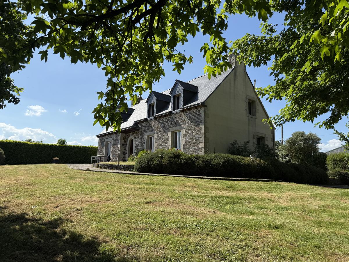 Référence : 22115-3378Sur 3108 m2 de terrain, belle maison de tpye néo-bretonne, façade pierres, sur sous sol complet (garage, débarras, atelier) et comprenant en rez de chaussée surélevé, grand hall d'entrée desservant une cuisine meublée équipée, ouverte sur salle et salon cheminée, arrière cuisine/buanderie, couloir et placards, salle d'eau (douche italienne), deux belles chambres ; étage sur dalle de trois chambres, salle d'eau et wc, grenier.