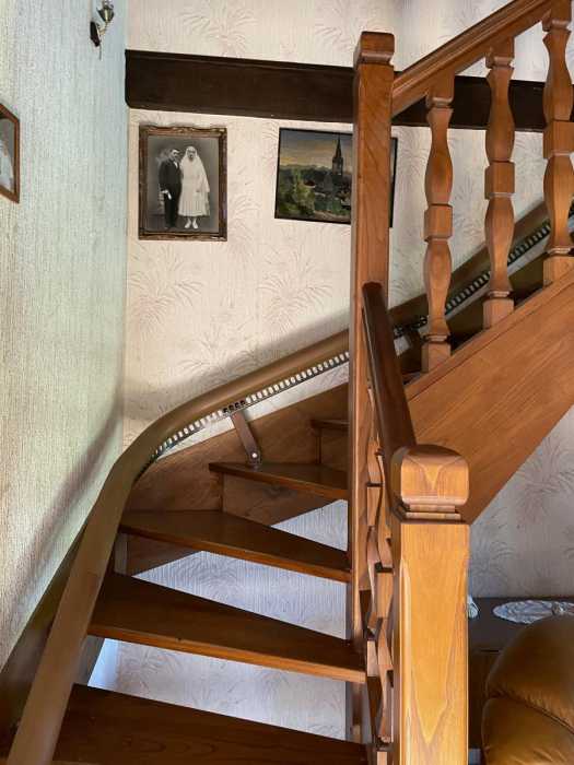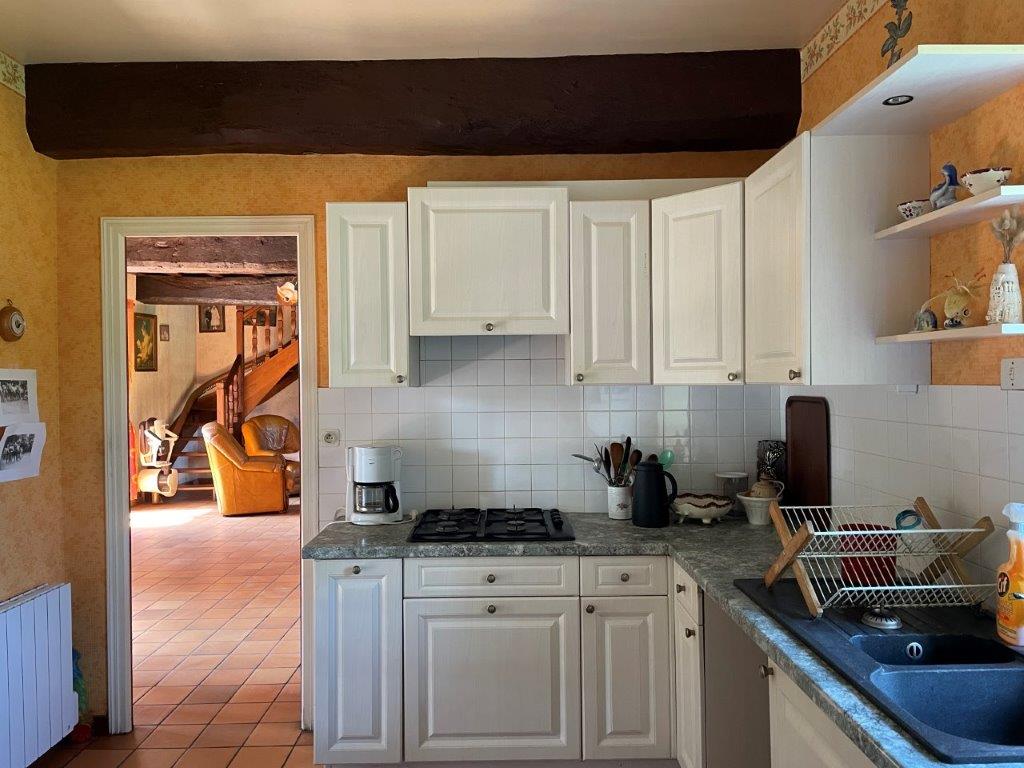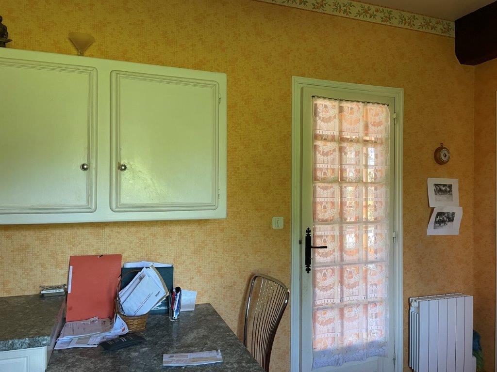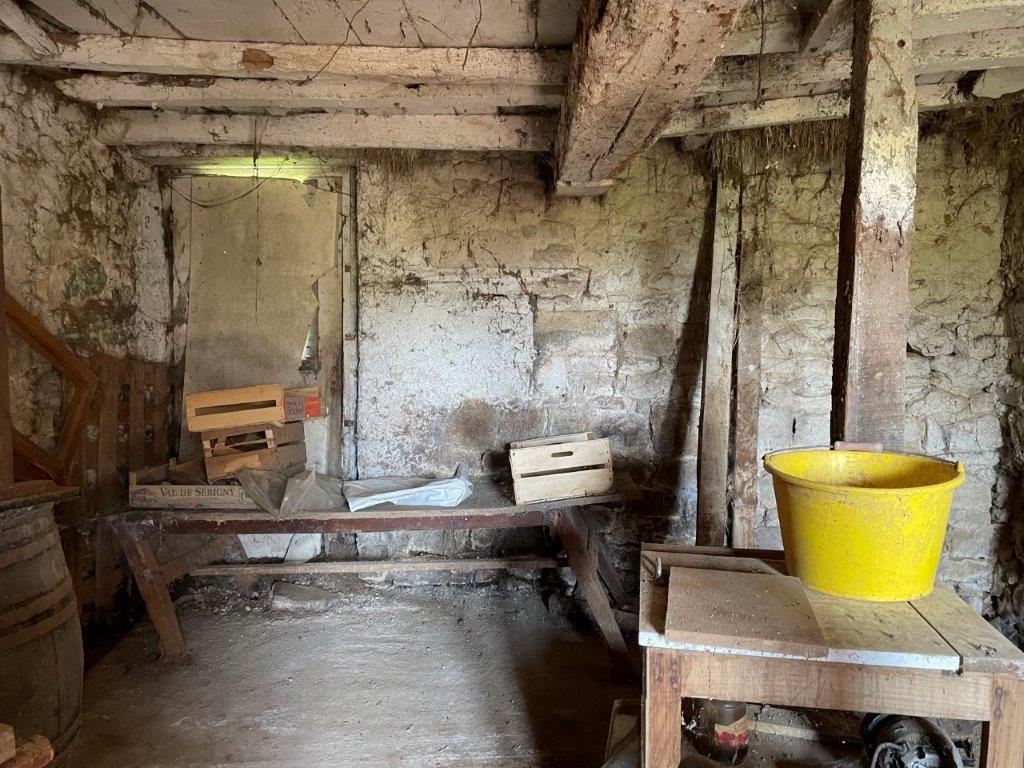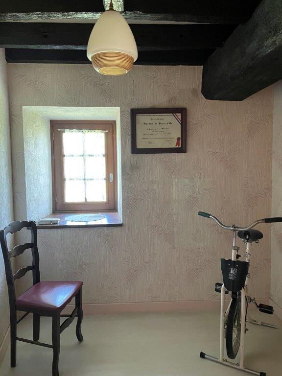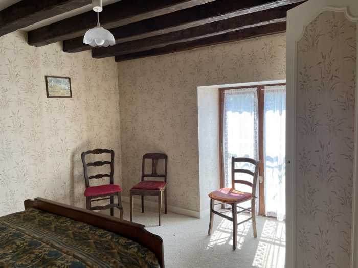 Independent longère (former presbytery) built of stone under slate roof and outbuildings on 1,596 m2 of land, comprising entrance hall, wc and washbasin, kitchen, living/dining room with insert fireplace; first floor of three bedrooms, wc, bathroom. 2 stone buildings used as storage rooms, covered courtyard. Boiler room/laundry room garage. Yard and land.