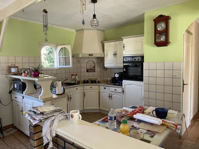 Pavillon indépendant sur 840 m2 de terrain comprenant au rez de chaussée cuisine meublée/équipée ouverte sur salle et salon, wc, salle de bains (baignoire et cabine de douches), 2 chambres ; étage sur dalle béton d'une grande chambre et débarras. Sous-sol avec buanderie et garage. Atelier. Abri de jardin.