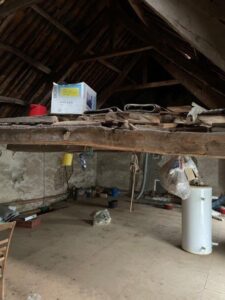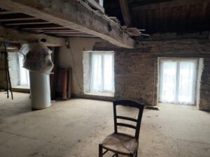What you see in the exterior photographs is two dwellings - both are included in the sale - so a lot of property for the sale price. It/They are semi detached/attached to another property. A renovation project is definitely on the cards here with an opportunity to include huge loft spaces. Ground floor in the first section: kitchen, 2 bedrooms, WC, shower room… in the second section, sitting and living room with fireplace. Integral Garage. Very interesting looking loft spaces over the ensemble - so plenty of scope for adding more accommodation (subject to planning consent - yes they have that there too). Almost 1,000m2 of garden space... plenty enough whether you are resident full time or if you plan to travel too and fro. A very handy Barn/outbuilding can provide amble storage/garaging or conversion to accommodation (subject to planning consent).