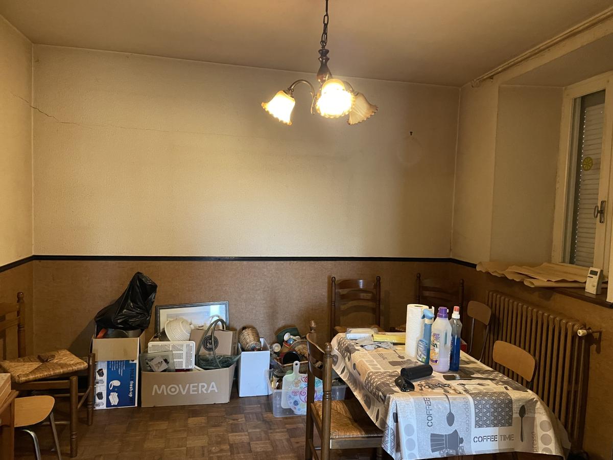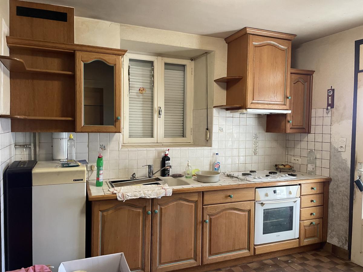 Maison mitoyenne d'un côté, en pierres sous ardoises, comprenant véranda, cuisine partiellement meublée/équipée, salle à manger cheminée, salon, wc ; étage sur dalle de deux chambres, salle de bains. Jardin devant et derrière pour 262 m2*. Autre jardin juste à côté de 172 m2*. Garage indépendant et en appentis bâtisse en pierres à usage de débarras.