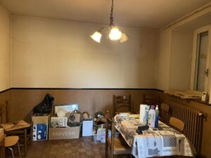 Semi-detached house on one side, in stone under slate, comprising veranda, partially furnished/equipped kitchen, dining room with fireplace, living room, toilet; upstairs on slab with two bedrooms, bathroom. Garden in front and behind for 262* m2. Another garden right next door of 172 m2*. Independent garage and lean-to stone building used as storage.