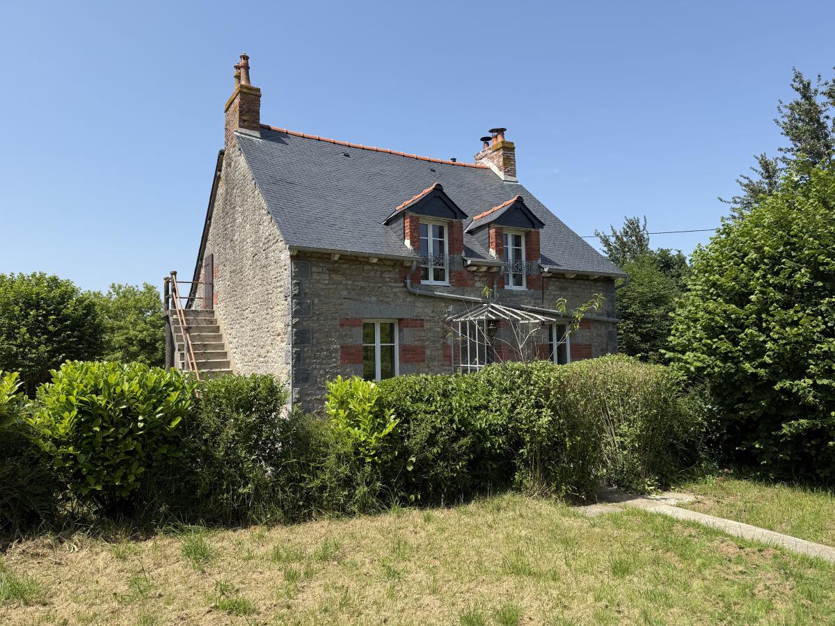 Sur 2749 m2 de terrain, maison indépendante en pierres sous ardoises, élevée sur sous-sol et comprenant au rez de chaussée une cuisine/salon, deux chambres, salle d'eau, wc ; accès par l'extérieur pour l'étage : comble aménageable (grande pièce). En appentis pièce avec cheminée et petit comble. Dépendance à usage de débarras.