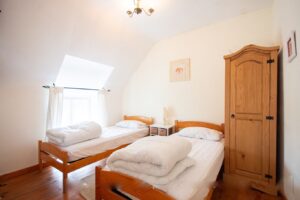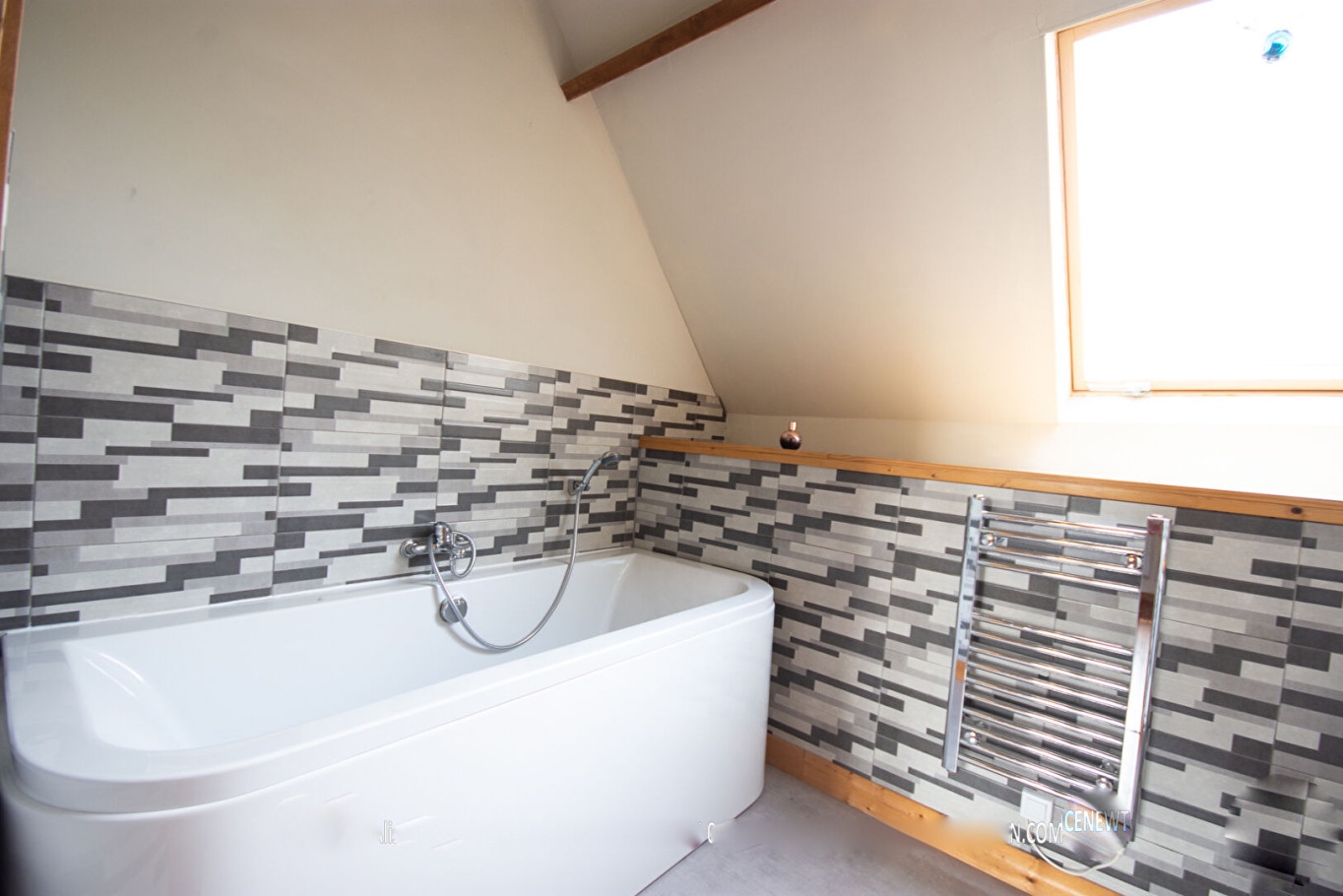 Upstairs, a spacious master bedroom offers an intimate refuge with its en suite bathroom, while a second, delicately furnished bedroom welcomes family or friends. An additional bathroom completes this space designed for well-being.