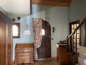 House near to the town centre of Loudéac comprising on the Ground floor: a large entrance hall, fitted and equipped kitchen, living/dining room with open fireplace, one bedroom, bathroom, and toilet with washbasin.