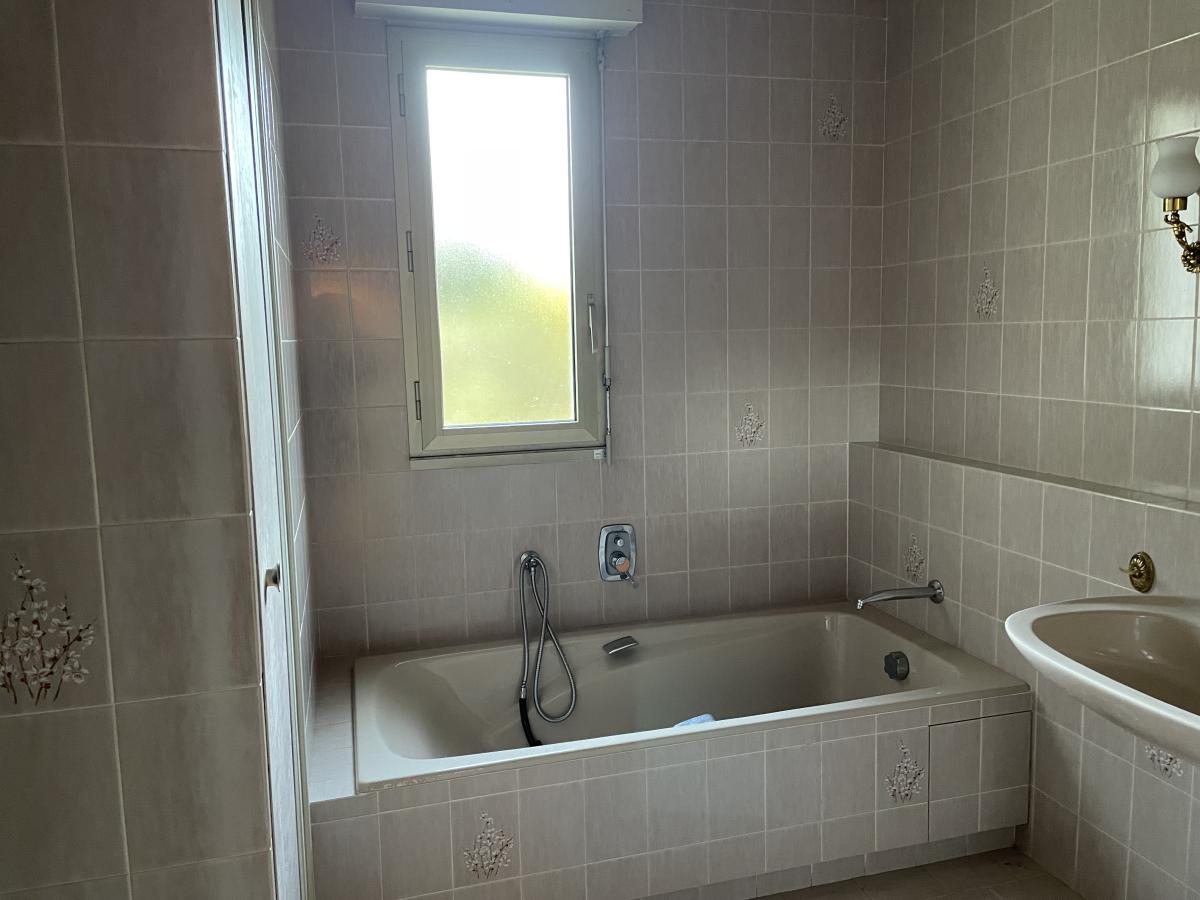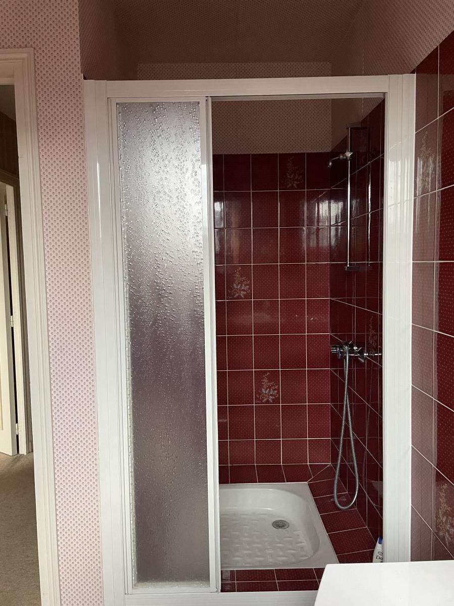 Beautiful, spacious (165 m²) and bright house in the town centre, semi-detached on both sides, comprising a large entrance hall leading to a fitted/equipped kitchen (excluding dishwasher), living and dining room with open fireplace, double terrace, WC and washbasin, a large bedroom, and a bathroom; upstairs, the first landing has built-in wardrobes and a hallway, and a bedroom; the second landing has two large bedrooms and an additional attic room, a shower room, WC, and a small attic used for storage. Garage. Front and rear gardens totaling 431 m². Energy performance rating: D - 244 and B - 8.