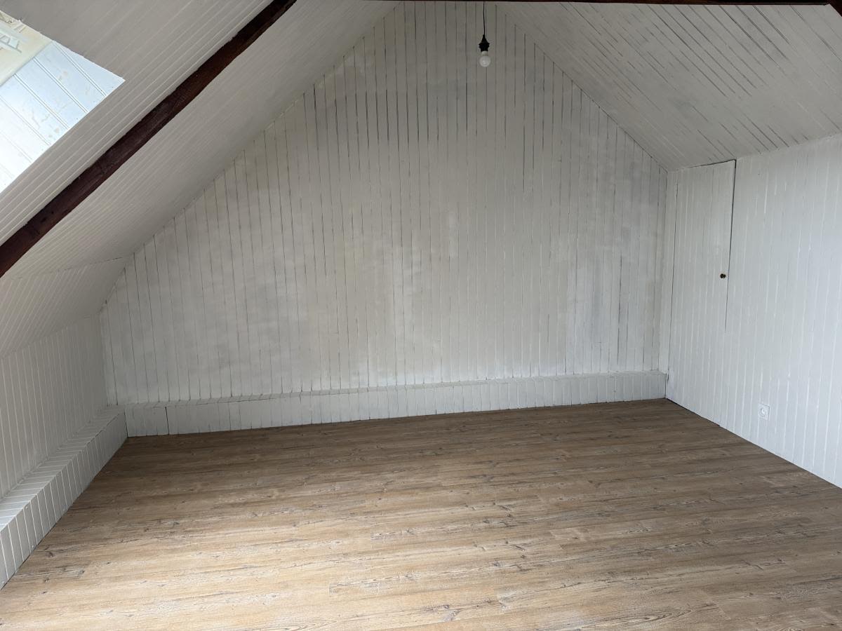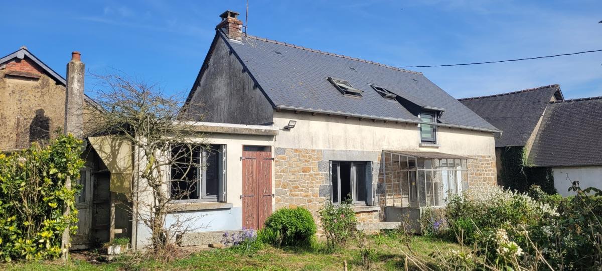 Charming detached house with a natural slate roof (in perfect condition) on a 400 sq m garden with outbuildings and parking space. It comprises a partially equipped kitchen (hob and sink), living/dining room, one bedroom, bathroom and WC; upstairs there are two further bedrooms, a WC and washbasin. Compliant sanitation system.