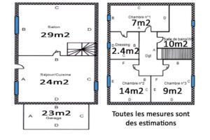 First floor : 3 bedrooms (one with dressing room) and a bathroom with shower, bath, wc and basin