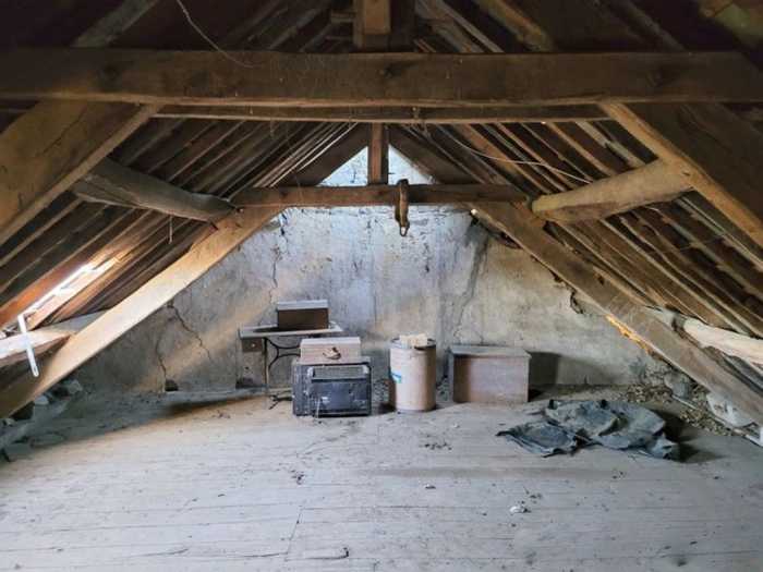Quiet in the countryside, 3 minutes by car from the shops. Facing south, the house comprises on the ground floor, an entrance hall with staircase, storage room, kitchen-living room with fireplace. On the first floor, corridor with stairs, 2 bedrooms. Convertible attic above. Adjoining to the West, old stable-barn in concrete block with floor and lean-to at the end. Adjoining half-timbered shed to the North. Garage-henhouse, small hangar, old pigsty. Beautiful land with captured source.