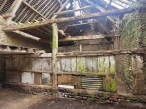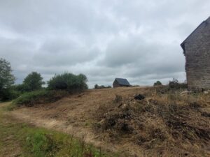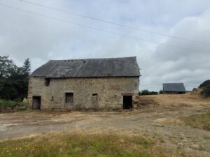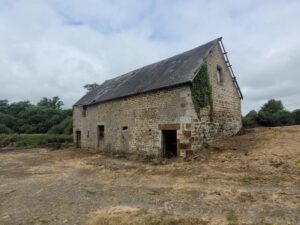 One for the intrepids! Where have all the builder/developers gone? In peaceful setting at the end of a cul-de-sac… just 10 minutes from Vire this large barn is in need of restoration. It sits on 4000m² of grounds (an acre but it is possible to acquire a hectare 2.5 acres). It benefits from a certificat d’urbanisme operational to transform this barn. South facing offering a a ground surface area of 130 m² with a small stone outbuilding of around 30m².