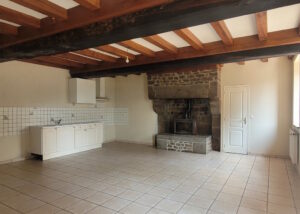 Ground floor : tiled kitchen-dining room of around 40 sqm with a granit fireplace and exposed beams.
