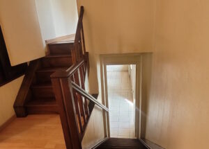From the main room, opposite the bolier room, few steps to a small landing space leading to the bathroom-WC and a bedroom (ar. 15 m²) facing south.