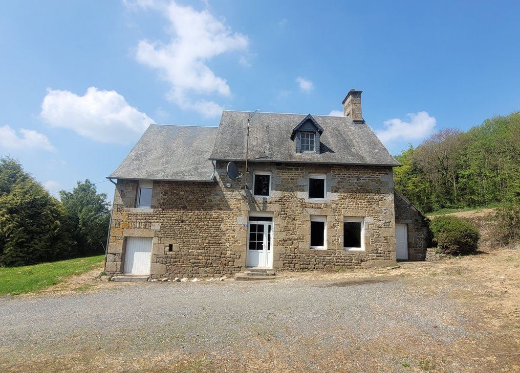 In a quiet countryside location with beautiful views, on approximately 1.5 hectares of land, a 3-minute drive from shops and a school, 45 minutes from the beach, 25 minutes from the train station, 20 minutes from Vire, and 15 minutes from Brécey, this 18th-century stone house with no close neighbours comprises Ground floor - Kitchen-living room (approx. 40 m²) with a granite fireplace. Boiler room-laundry room. Cellar with WC. Upstairs, a first landing leads to a bathroom-WC and a bedroom of approximately 15 m². A second landing - hallway, large enough for a study or office area, leads to three bedrooms (one of approximately 13.5 m² and two of approximately 9.5 m²).