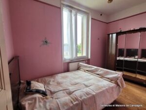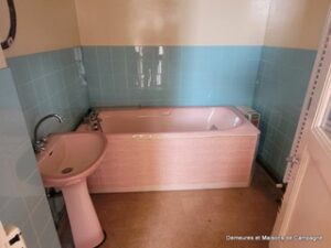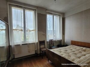 Some repairs would be necessary on the roof. ••• The second one comprises on the ground floor a large garage high enough for a camper van. A WC. •••• On the first floor above on wooden flooring there are two rooms. The windows need to be changed.