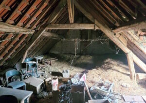 A l'étage : petite chambre et grenier aménageable sur plancher.