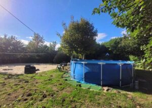 Terrain arboré d'environ 1 hectare à délimiter avec terrain de volley et piscine hors sol.