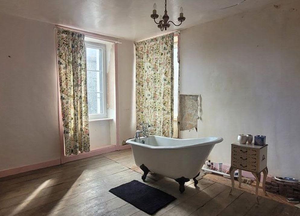 Etage : chambre (15 m²), vaste salle de bains - wc.(15 m²)