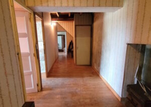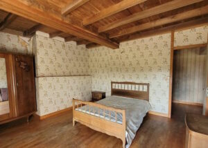 kitchen-living room with beams and fireplace, bedroom, bathroom, WC, pantry.