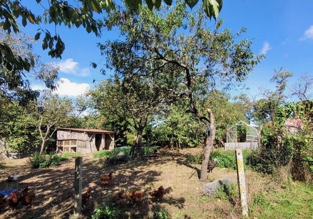 Garden with fruit trees behind the house and to the east.
