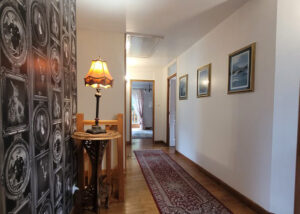 Upstairs: Landing-hallway leading to 4 bedrooms, one with shower-WC, one with bathroom-WC, one with sink-WC, another bedroom, separate bathroom-WC.