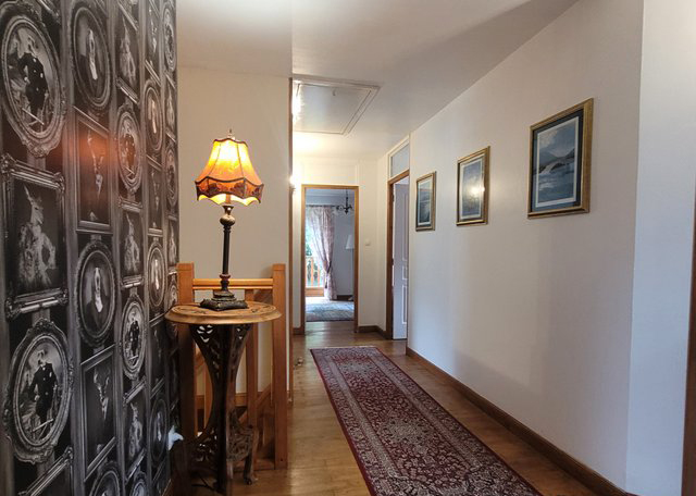 Upstairs: landing-hallway leading to 4 bedrooms, one with shower-WC, one with bathroom-WC, one with sink-WC, another bedroom, separate bathroom-WC.