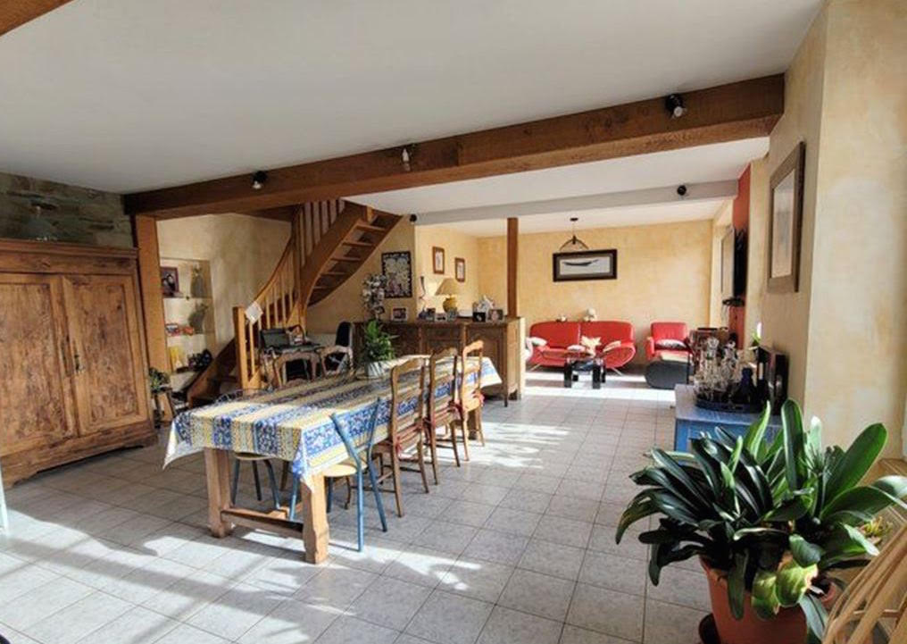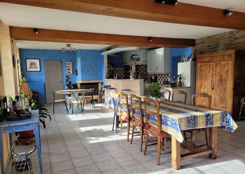 On 1.6 hectares, in a peaceful rural setting with a 5m x 10m indoor swimming pool, this former farmhouse includes a house and numerous outbuildings. It's 4 minutes from the school and local shops, 10 minutes from the supermarket, 15 minutes from Mortain and the high school, 30 minutes from Avranches, and 50 minutes from the beach.