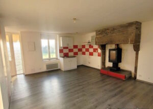 Cette maison orientée Sud-Ouest comprend une cuisine - séjour avec cheminée granit équipée d'un poêle, 1 chambre avec salle de bain - WC.